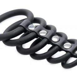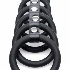 This set of silicone rings is perfect for mentally and physically locking you or your lover’s shaft from sexual gratification! The combination silicone and PU leather materials makes this device accessible and easy to use for most skill levels, while also providing a fulfilling chastity experience for expert BDSM players.
