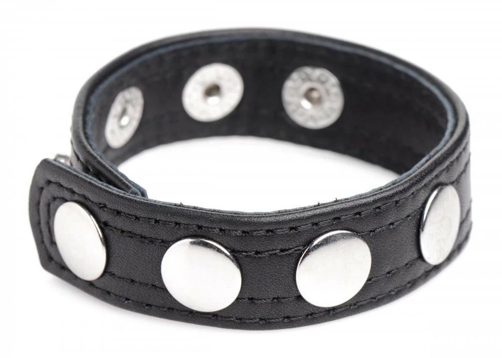 Use a little of your favorite lube to reduce friction and stroke your cock. Wrap the strap around the base of your shaft, below the balls, and then press the snaps together to secure it. Enjoy the feeling of extra blood pulsing through your engorged cock and let your lover take a good look at your sexy, swollen and stylish dick!
