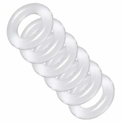 You have complete control of the level of tension when you customize your pleasure with 6 individual rings. Whether you’re new to ball-stretching or an enthusiast, you can begin with one ring and work your way up to discover where your comfort level meets maximum pleasure. Your sack will be yanked down a little more with each additional ring. You can even use one around your cock and balls to further increase sensation and hardness. Each of these six rings is ultra stretchy for convenient use and a comfortable fit. Compatible with both silicone and water-based lubricants. Clean with mild soap and water after use.