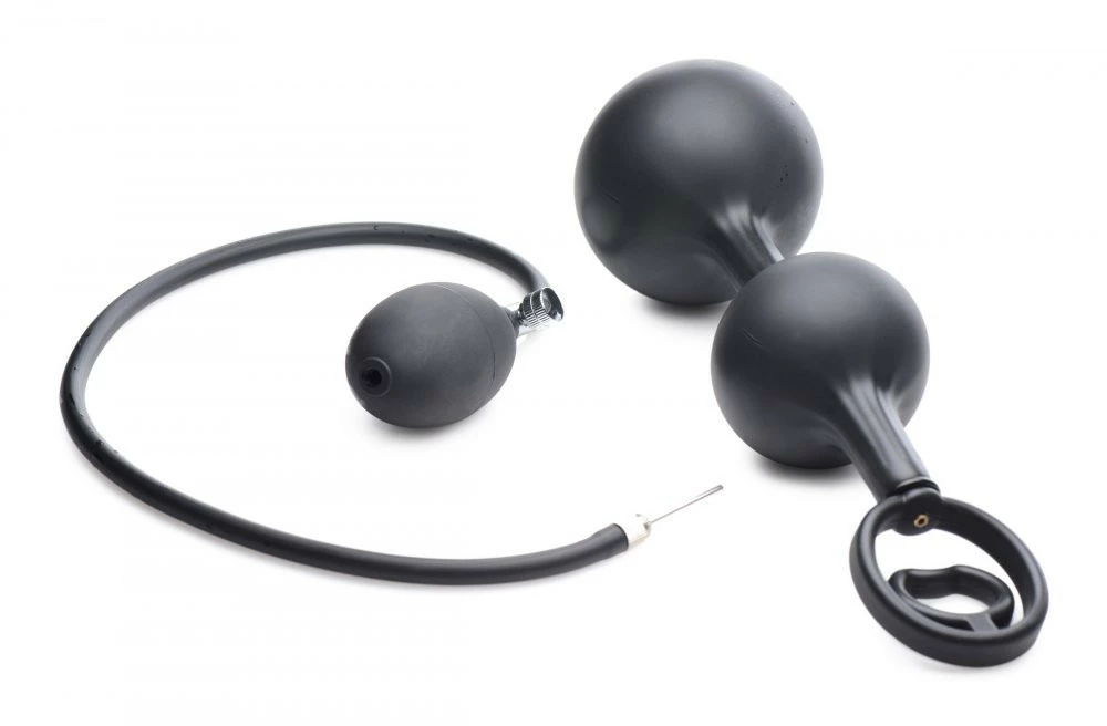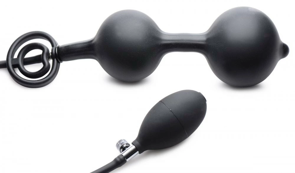 Satisfy your need for anal fill while enhancing your erection! This inflatable silicone plug lets you customize the amount of stretch in your backdoor, stimulating you all the while with the kinky rattling balls hidden within each bulb.