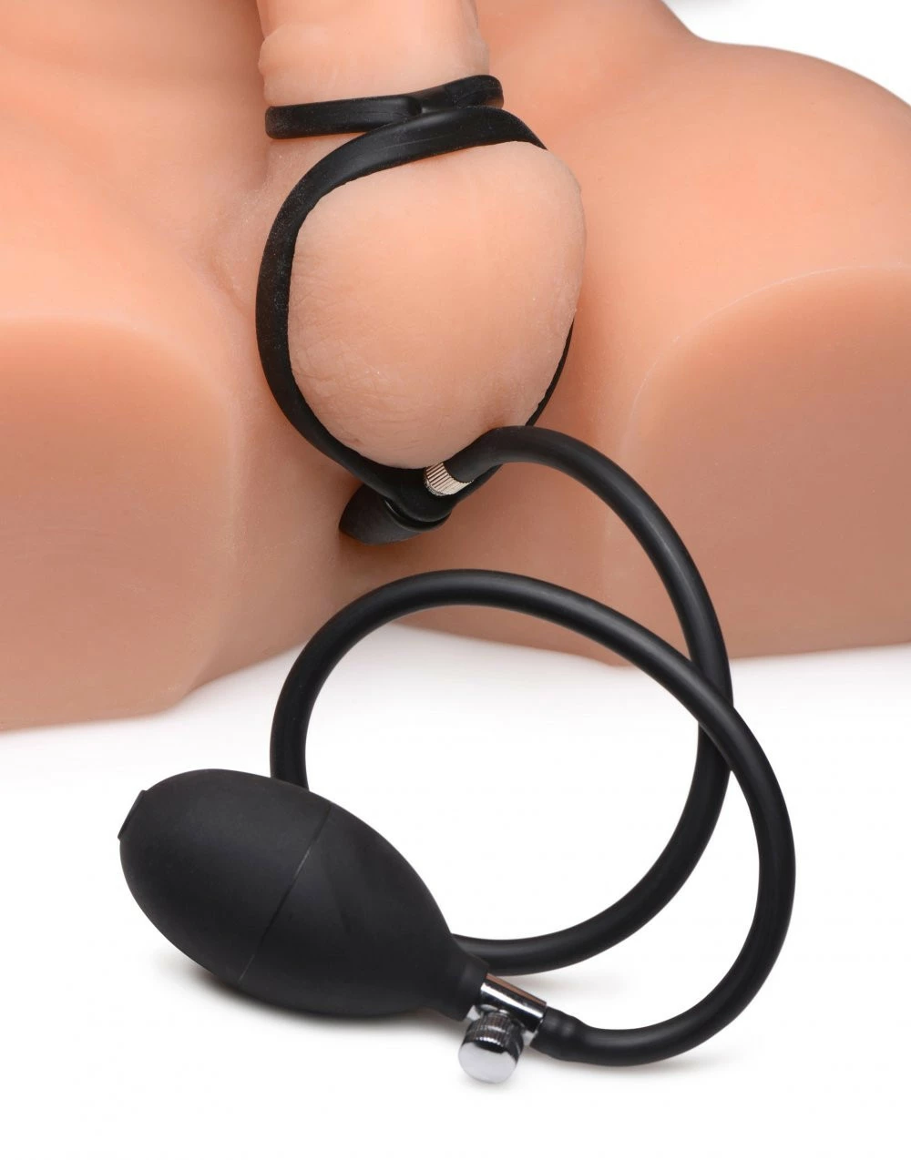 Keywords: anal plug, silicone, inflatable, cock and ball rings, hand pump, customizable, rattling balls, erection enhancement, anal toy