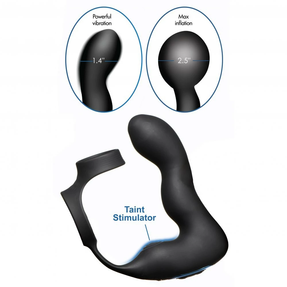 Inflatable & Vibrating Prostate Plug w/ Cock & Ball Ring & Remote Control Specs: