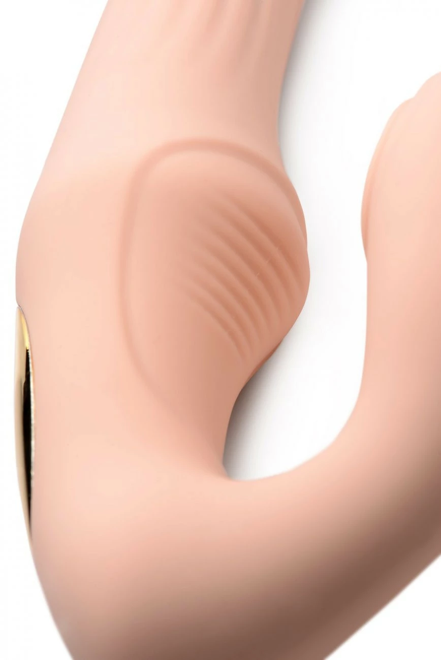 Indulge in the powerful vibration motors found in the shaft and clitoral pad of this strap-on! Choose from speeds and 5 patterns and 3 intensities of vibration for both shaft and pad, as well as 7 intensities of G-spot pulsing. Mix and match intensities and patterns to suit your playstyle and find what works for you and your partner – utilize the included wireless controller for a more convenient experience. Rechargeable via included USB charging cable.
