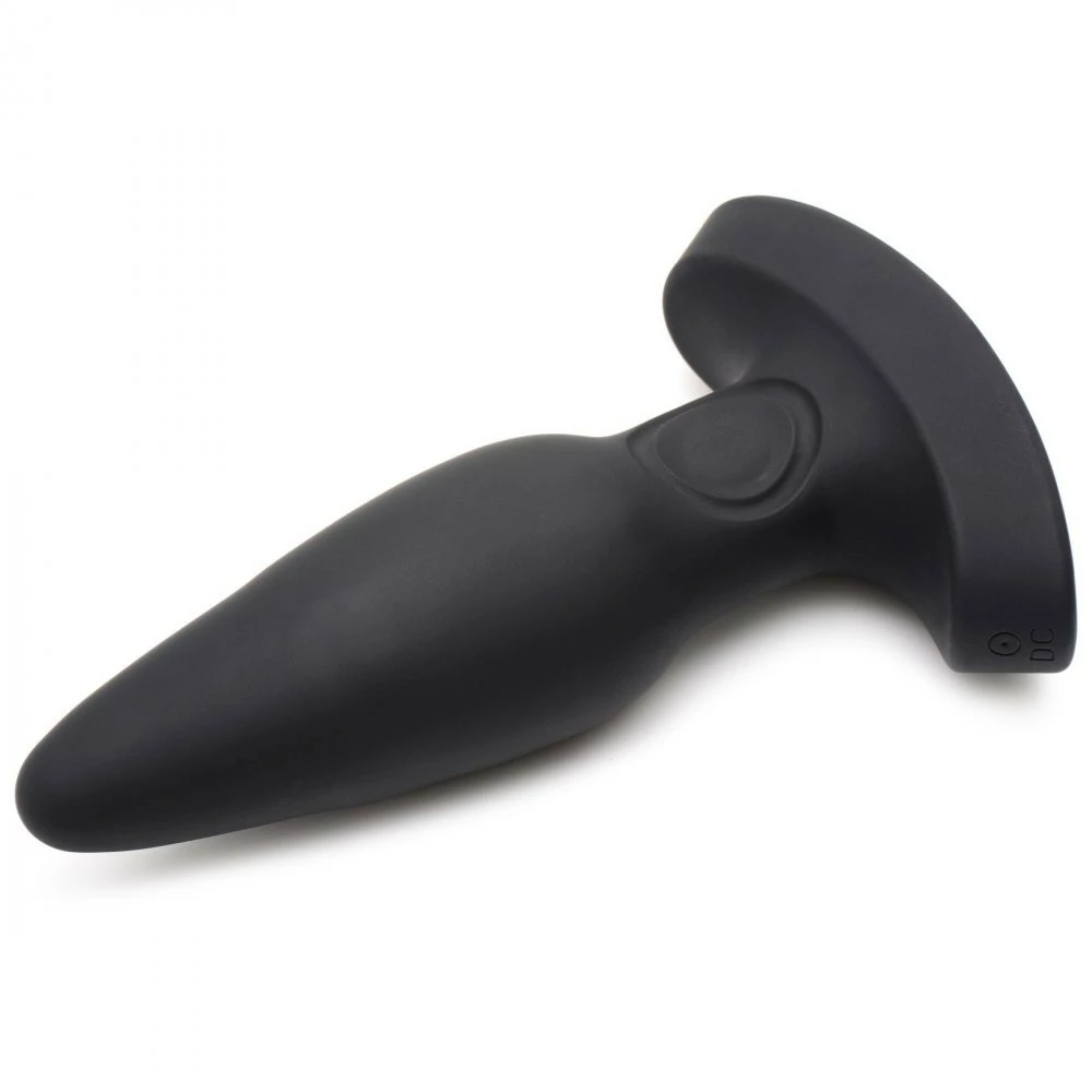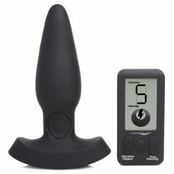 This thick, plush and silky smooth plug will both vibrate and pulse to your delight! It has 3 speeds and 2 patterns that you control with a wireless, battery-operated remote that can reach up to 32 feet away! The large LCD screen helps you see exactly what setting you’re on so you or your partner can give you exactly the sensation you desire. With a tapered tip, insertion is easy and the wide, flanged base means it’s also safe! Made of premium silicone, it’s phthalate-free and works best with water-based lubricants. Rated as IPX5 waterproof, it can handle low pressure water jets but not submersion. After use, clean it with warm water and mild soap, then spray with a toy cleaner and dry. Store in a cool, dark place separate from other silicone toys. Recharge using the USB cable provided.