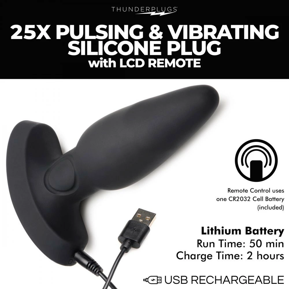 25X Pulsing & Vibrating Silicone Plug w/ LCD Remote Specs: