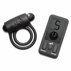 Give yourself and your partner something extra to enjoy next time they take a ride on your rod! This double-ringed cock ring has a ring that goes around your shaft and another that fits securely beneath your balls so it stays in place. Made of phthalate-free, premium silicone, it is stretchy, soft and plush. The top of the ring has a cylinder pocket for the ABS plastic vibrating bullet. Enjoy 5 speeds and 5 patterns of powerful vibration! Enjoy this toy again and again by recharging it using the USB cable and jackpin end provided. Simply push the jackpin into the DC dimple and charge up! The LCD screen remote control helps you choose what patterns and vibes you’d like to enjoy. Control it yourself or hand it to your partner so they can turn you in their own personal sex machine! After use, wash the toy and the bullet separately with warm water and soap, then spray with a toy cleaner and wipe dry.