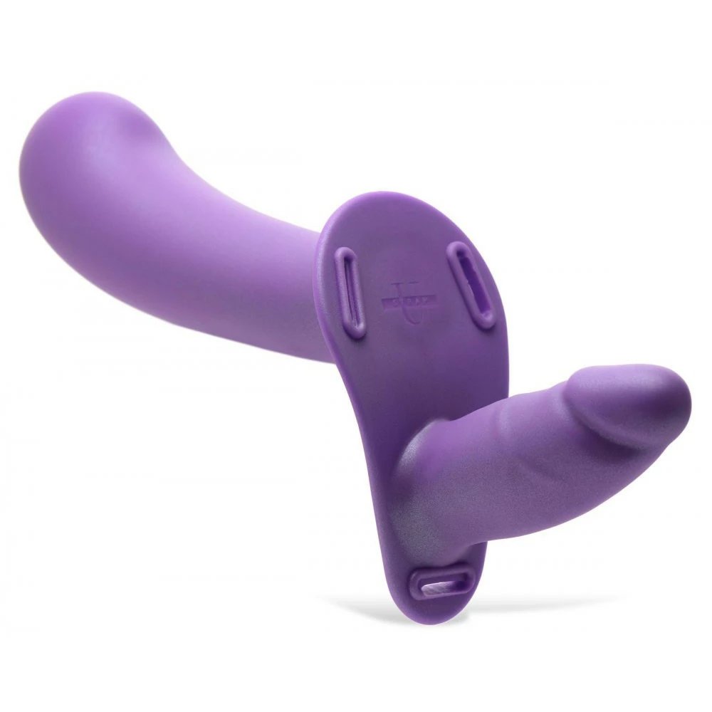 This double dildo duo is a fantastic strapon for beginners or advanced pegging and strapon lovers! The two dildos each have their own vibrating motors that can be controlled using the remote control provided and can be turned on or off individually and separately from each other. The premium silicone is phthalate-free and body safe. The larger dildo is used to insert inside your partner and has a large, bulbous end designed to target the G-spot and massage it. The smaller dildo is designed to be a comfortable fit inside the strapon wearer so they can feel vibration and penetration as they thrust! The harness is made of PU leather and has metal buckles that are easy to use for fully adjustable straps. The vibrating dildos are fully rechargeable, simply use the USB cable provided. After use, wash dildos with warm water and soap and spray clean with a toy cleaner. Do not submerge in water. Spot clean the harness as needed. Store in a cool, dark place.