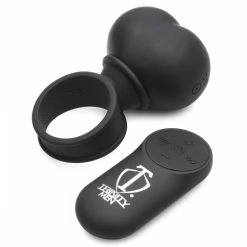 Give yourself a pair of big, heavy balls that vibrate and stimulate everyone involved! This pair of heavy nuts vibrates with 4 speeds and 7 patterns to choose from. The battery operated remote can control the balls from up to 32 feet away so you can play some kinky, frisky games with this toy, as well! Held on via a cock ring, it can be slipped on so it rests right above the testicles, or for some it can even go behind it, as well. Give both you balls and your partners balls or clit an extra buzz with this fun pair!