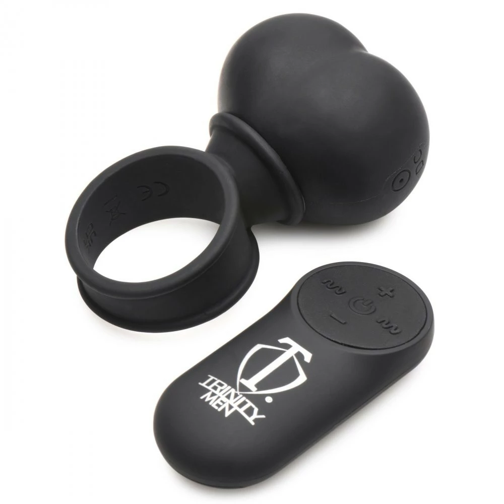 Add some pleasure-filled fun into your foreplay and main event! This vibrating ball sack can be added to a strapon dildo or to your own personal cock to buzz and bounce against your partner with each thrust! Use it during solo masturbation and enjoy the heaviness of a ballsack on your testes while it buzzes away. Let your partner have the remote so they can enjoy watching you squirm with delight as your balls get buzzed, or so they can change the settings as you pound them!