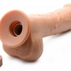 This Loadz dildo comes with an automatic squirting function (with a max capacity of 10 ml) that sends the liquid of your choice wherever the dildo is pointed. Use your favorite faux-load lube for a realistic smell, texture, and appearance.