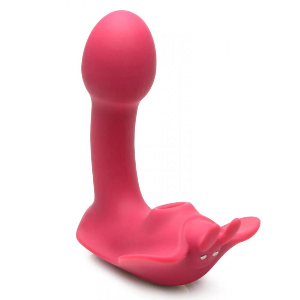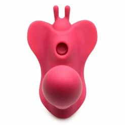 Let your heart flutter as this clit sucking, vibrating butterfly vibrator works its magic on your pussy! The bendable, flexible shaft can be positioned in a way that targets your G-spot and sends vibration right where it matters. The clit sucking external butterfly envelops your clitoris in a cavern of pleasure as the wings send vibes to your labia. Enjoy the air-stim technology as it gives your clit a BJ you won’t forget! Use water based lube on this splashproof, silicone toy. This toy comes with a remote control so you can go hands free with the toy or hand it over to a partner for even more fun!