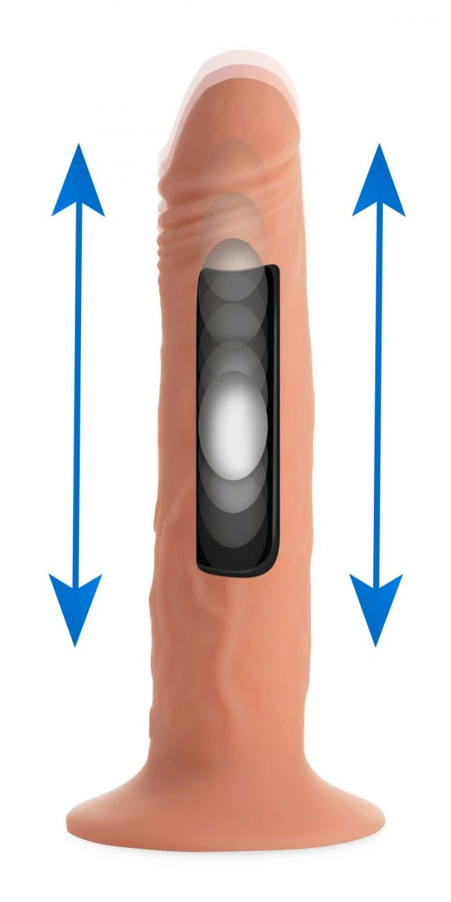 Available in a small, medium, or large, this thumping dildo will pulse up and down in your hole, treating you to hands-free ecstasy! Using state-of-the-art kinetic technology, Thump-Its fill you up and create a thrusting sensation by moving up and down all on their own. Cycle through with 3 speeds and 4 bumping bliss inside your body.