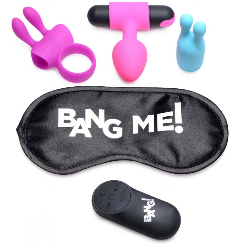 This creative kit will kick off a night of exploration! It includes silicone tickler, cock ring with rabbit ears and an anal plug. A remote controlled bullet vibrator and blindfold are also included!