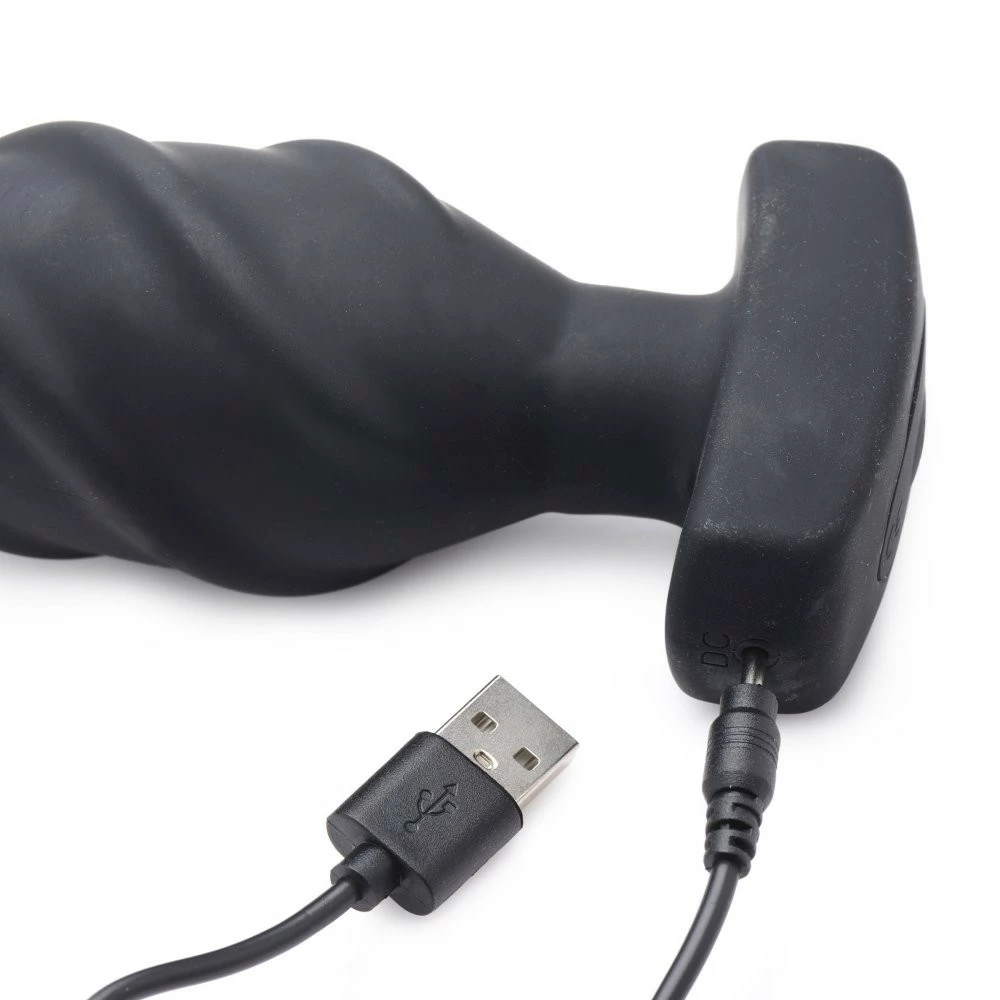 Feel the drilling power of this swirling, vibrating anal plug! Feel every twist as this plush and velvety plug enters your ass, providing a stimulating mass of pleasure for you to squeeze your walls against. The satisfying firmness is forgiving for beginners due to its plush texture and flexible tapered tip, but still provides the fullness anal veterans crave.