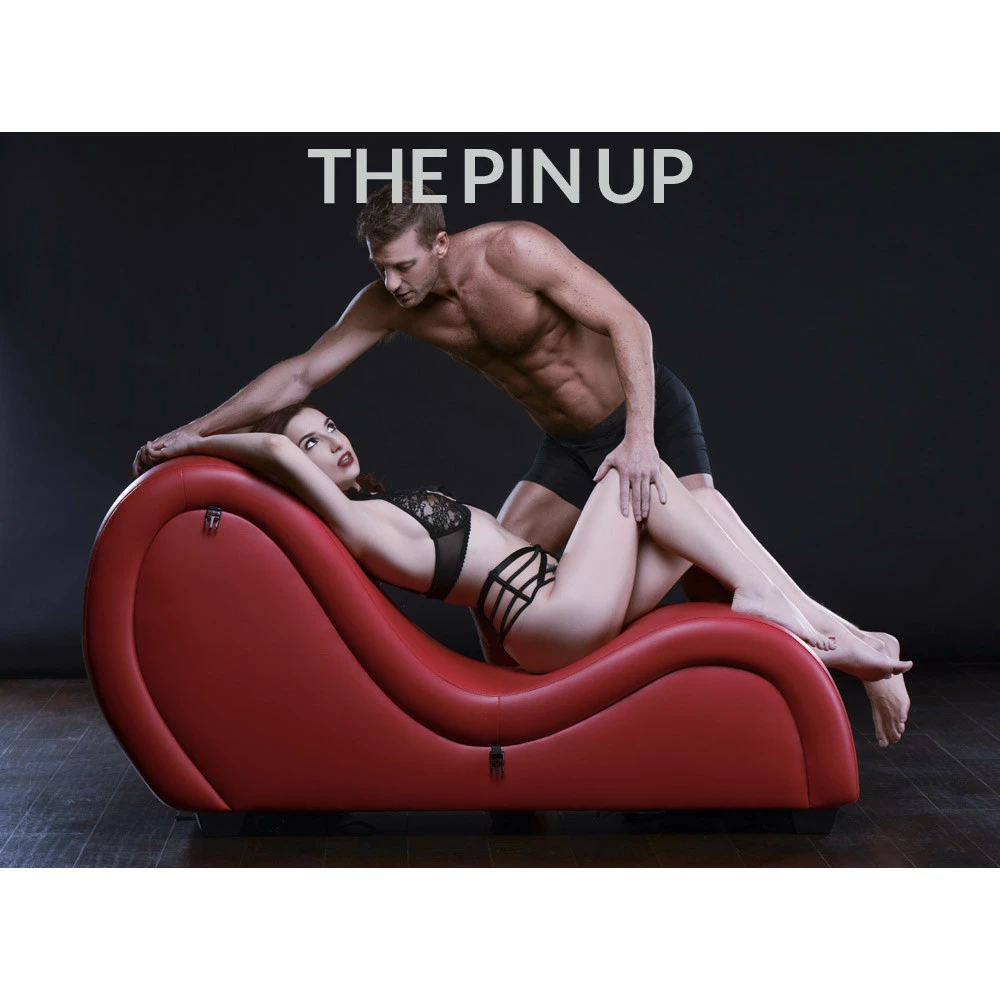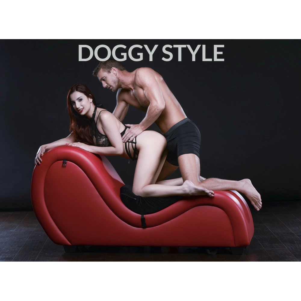 This sensual and sexy couch brings a new level of spice into your sex life! The structure is built from wood and metal, making it a durable and strong item to add to your bondage furniture collection. The surface is upholstered with smooth, easy to clean PU leather that feels good against bar skin and can handle almost any fluid exposed to it. Simply wipe clean after use. The two included pillows allow you to change and augment the shape of the couch, flattening curves when desired so that you or your partner can kneel or sit upright on a flat surface, or lay your head against the headrest. Use the pillows as sex aids and support, or muffle their cries of pleasure with them and you press them into the pillow with each vigorous thrust!