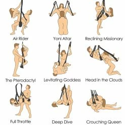 The Trinity Sex Swing is built strong and can hold up to 350lbs without spring. A variety of awesome sexual positions can be enjoyed with The Trinity Sex Swing. Hanging stand available.