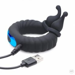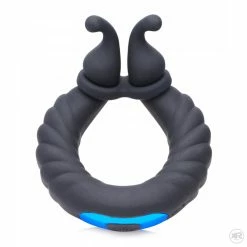This phthalate free, waterproof, silicone cock ring wraps around the cock with stretchy, silicone rings that make taking it off and putting it on easy! The silicone rings have a ribbed texture and are packed with two motors for intense vibrations for both you and your partner to enjoy! The curved prongs make it easy to stimulate the clitoris or tickle the anus.